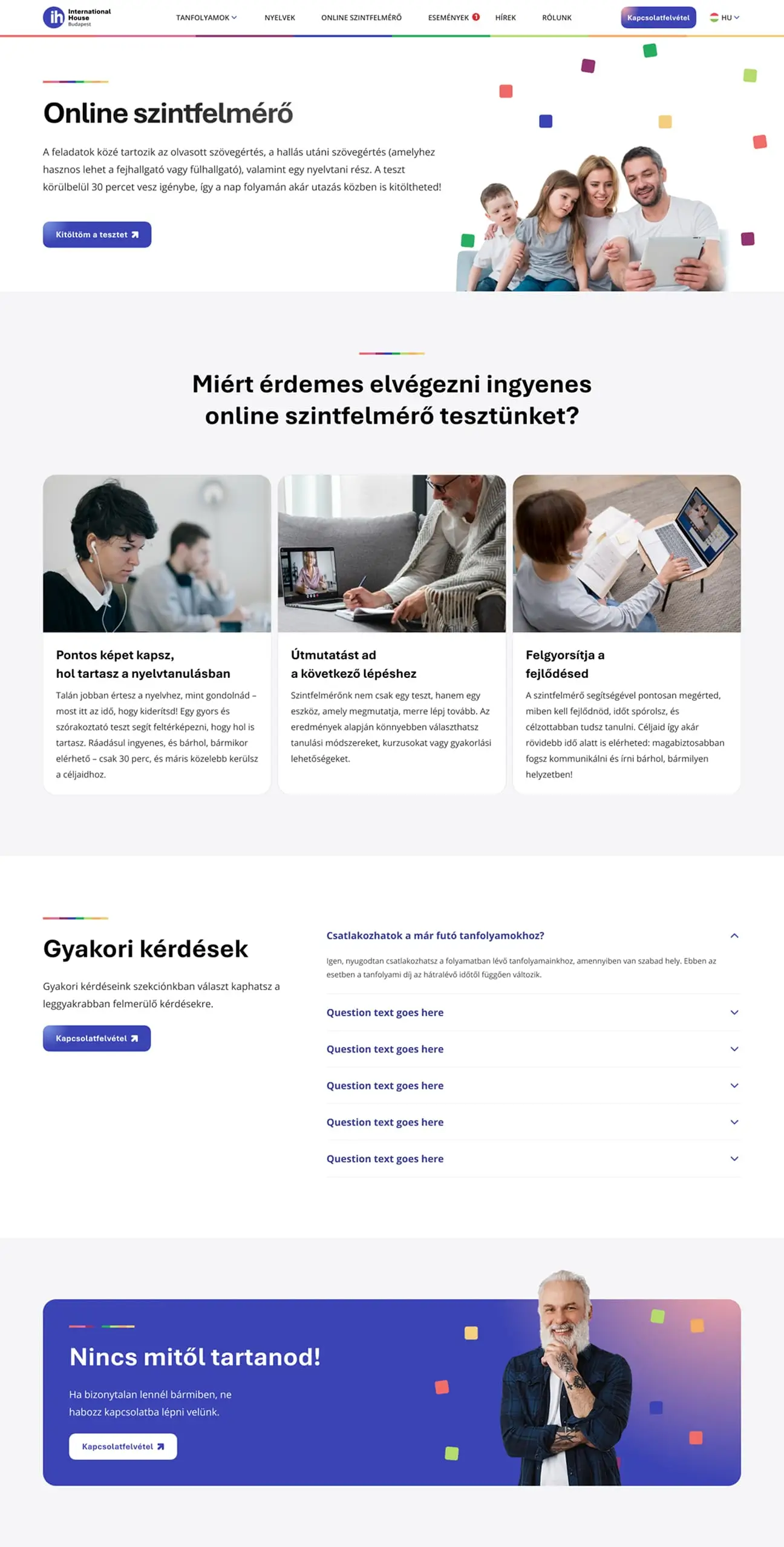 Our goal was to create a website that delivers the same quality of experience as International House’s teaching methods. Courses are clearly separated, navigation is logical, and every part of the site reflects the high standard that students encounter in the classroom. Learners can find what they need faster, and the marketing team can react more flexibly — resulting in a website that is both beautiful and effective.