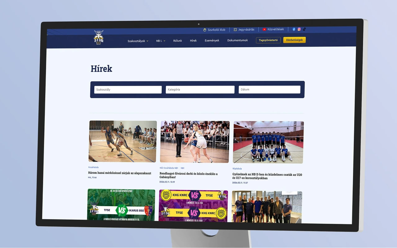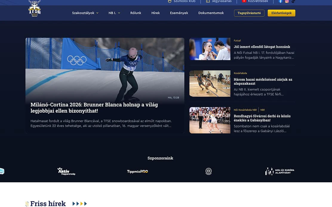 The previous website of TFSE (University of Physical Education Sports Club) no longer met the club's expectations. The interface had become outdated, content management was cumbersome, and the site's architecture made it impossible for the club to communicate quickly and efficiently with its members, coaches, and athletes. The goal was to create a modern website that is technically robust yet simple to use. We wanted the TFSE team to manage news, results, events, and broadcasts independently—without needing developer assistance.